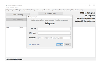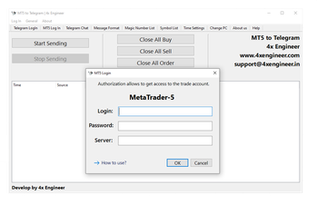 The software provides an easy login process to both MT5 and Telegram, facilitating a cohesive operation between your trading platform and communication channel.