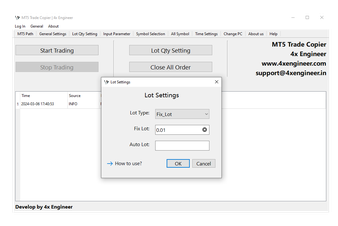 Includes 'Fixed Lot', 'Auto Lot', and 'Same as Master' settings, allowing users to customize order sizes based on their trading strategy or replicate the master's lot size directly.