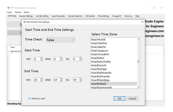 Users can define operational times for the software, including start and end times, ensuring alignment with specific market sessions or strategies.
